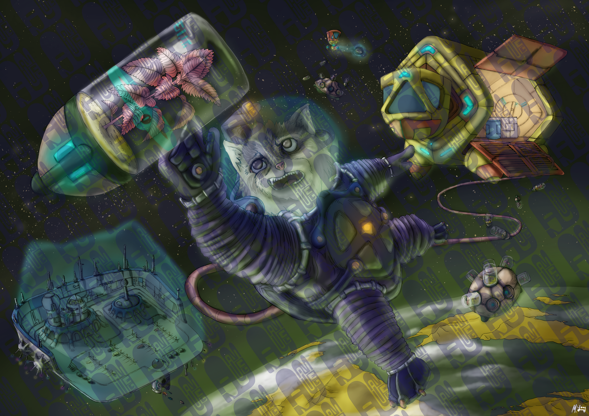 Moobear the cat has lost some precious cargo in space and is struggling to retrieve it before it gets lost forever.