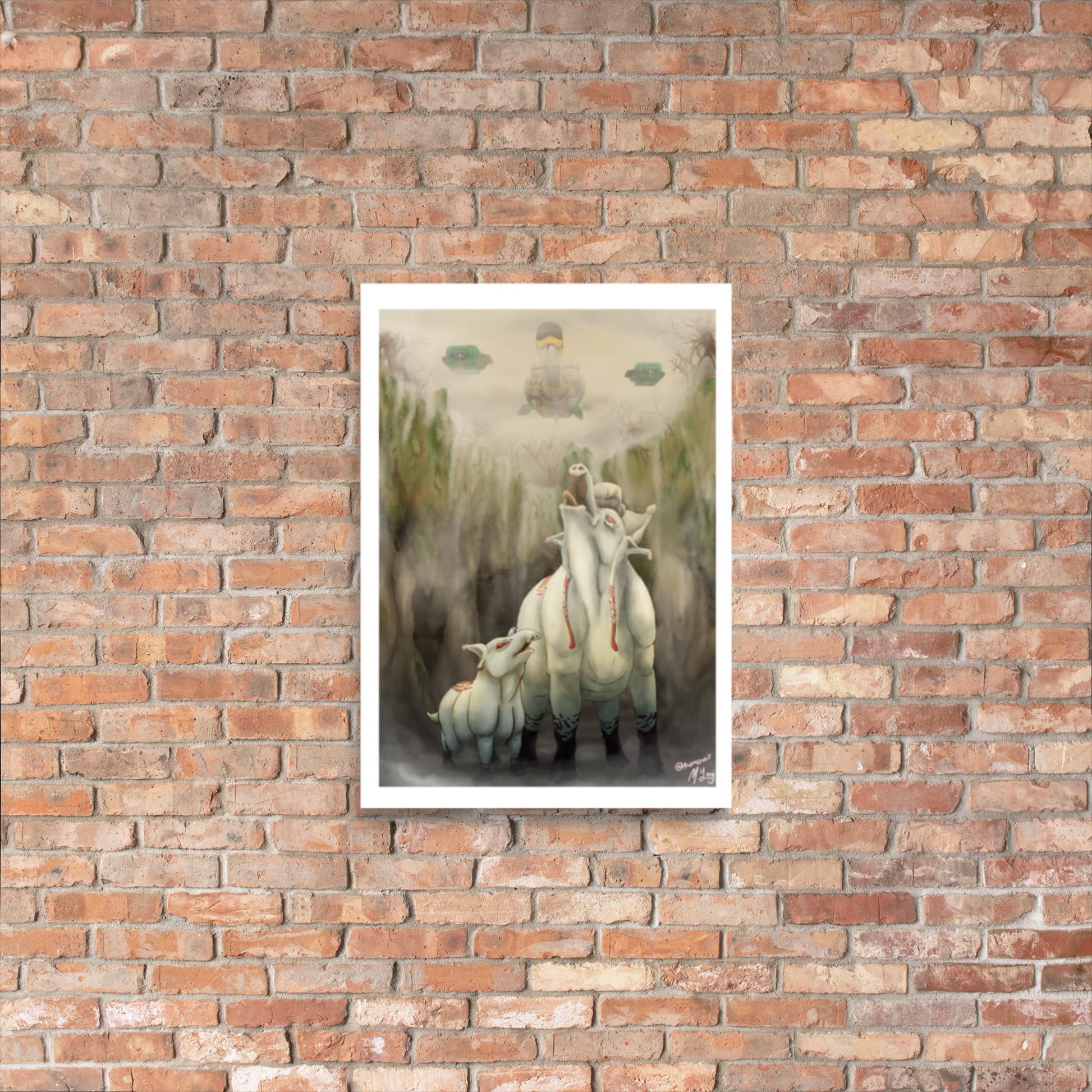 A Mother Oolong and her baby are looking up at the sky, noticing strange objects that are foreign to their planet. Are they visiting scientists curious about the planet, or are they invaders scavenging from it?